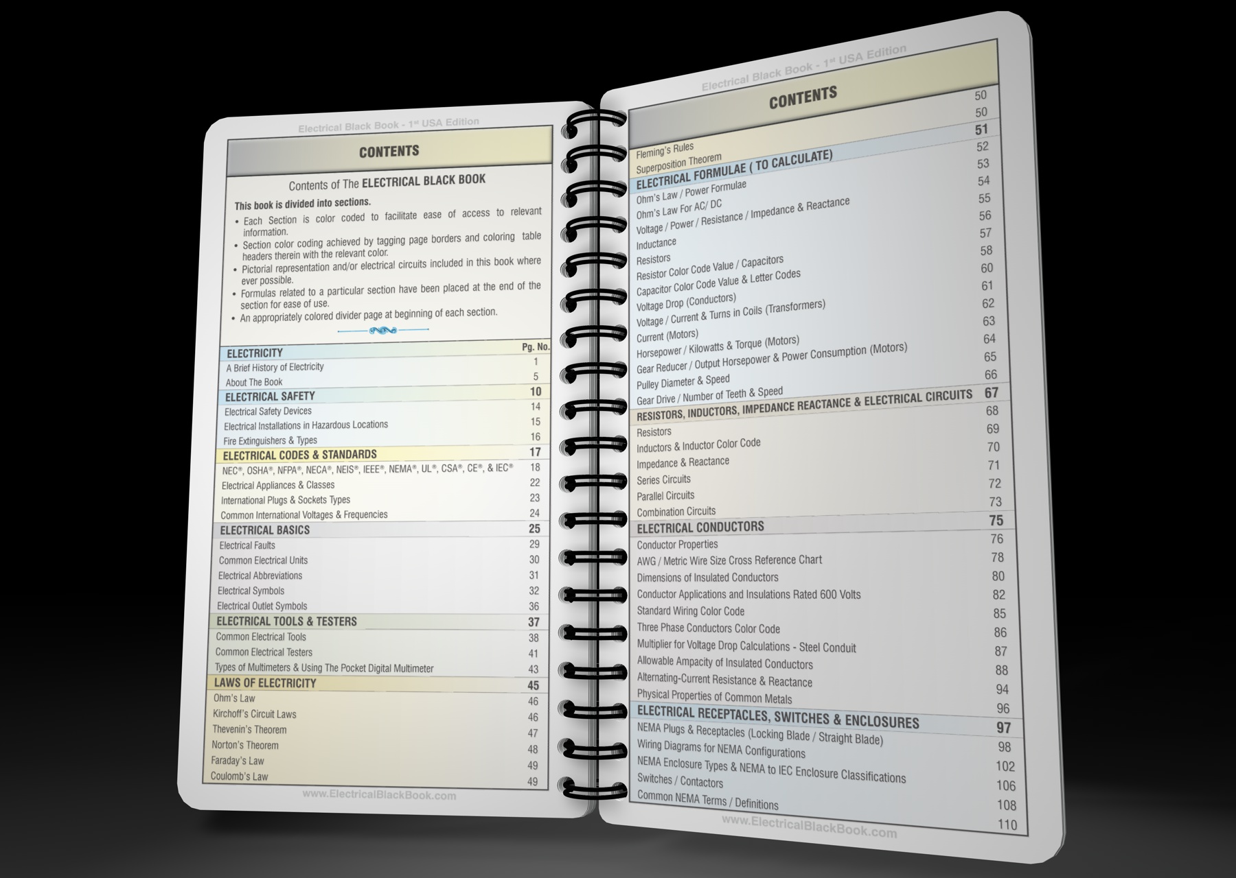 | Current Editions Available: | Electrical Black Book - USA 2nd Edition Buy Now Preview | Electrical Black Book - Australian / New Zealand 2nd Edition Buy Now Preview |